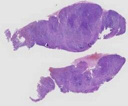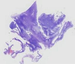大体所见: 灰白灰红色不整形组织一堆,大小约7cm×6cm×2cm,部分区域切面灰白、灰红、质软。