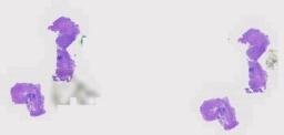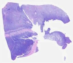 大体所见: 灰白色组织数块大小共约13*12.5*11cm,切面灰白实性质韧。