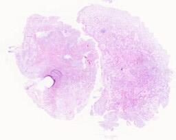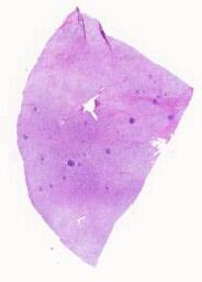 大体所见: 灰白灰红不整组织6块,总大小4cmx3cmx1cm,切面灰白灰红实性质软。