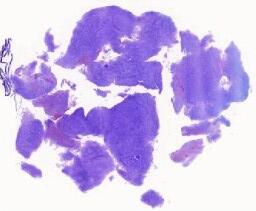 大体所见: 左侧颈部淋巴结:组织数块,3cm×2.8cm×1.5cm,大小不一,质软。