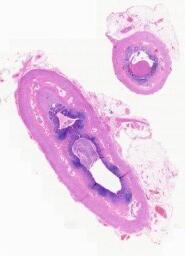大体所见: 灰白色组织5条,长0.8-1.5cm,直径0.1cm。