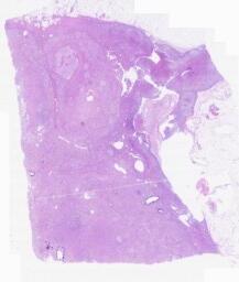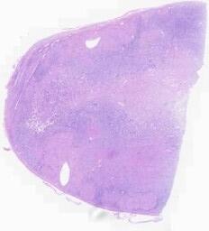 临床资料: 患者,男性,61岁,发现右侧睾丸肿大4+年。专科检查:右侧阴囊及睾丸肿大,局部皮肤无红肿,皮温正常,右侧睾丸约鹅蛋大小,质地硬,表面光滑,可活动,左侧正常,双侧腹股沟未扪及明显淋巴结肿大,透光实验阴性。术中见:睾丸鞘膜内少许淡黄色渗液约10ml,睾丸色呈灰白,质地硬,附睾稍增大。彩超检查:右侧睾丸大小约3.6×4.5cm,形态饱满,内回声不均质。其内扪及大小约3.2×3.7cm的混合回声团块,边界可见,形态较规则,内回声不均质,其内可见0.3×0.3cm的强光斑,后伴声影,团块内及周边可见丰富血流信号。提示:右侧睾丸混合回声团块?盆腔CT:右侧阴囊见约4.8×3.5cm不均质密度团块影,内见高密度结节影。考虑占位病变,检查提示睾丸肿物。