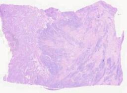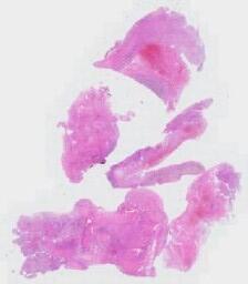 临床资料: 患者女,47岁现病史:4个月年前因下腹胀痛,行超声检查示子宫肌瘤,2个月复查病灶较前增长,遂行全子宫及双附件切除,术中探查:宫腔内鱼肉样改变既往史:末次怀孕33岁(人流),7年前卵巢囊肿手术,9年前子宫肌瘤手术