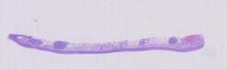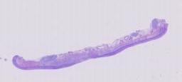 大体所见: 送检灰白灰褐色粘膜组织一块,大小4.7cm×1.6cm×0.2cm。全取
