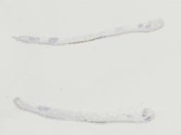 大体所见: 灰白色组织2块,总大小约0.5cmx0.3cmx0.2cm,全取。
